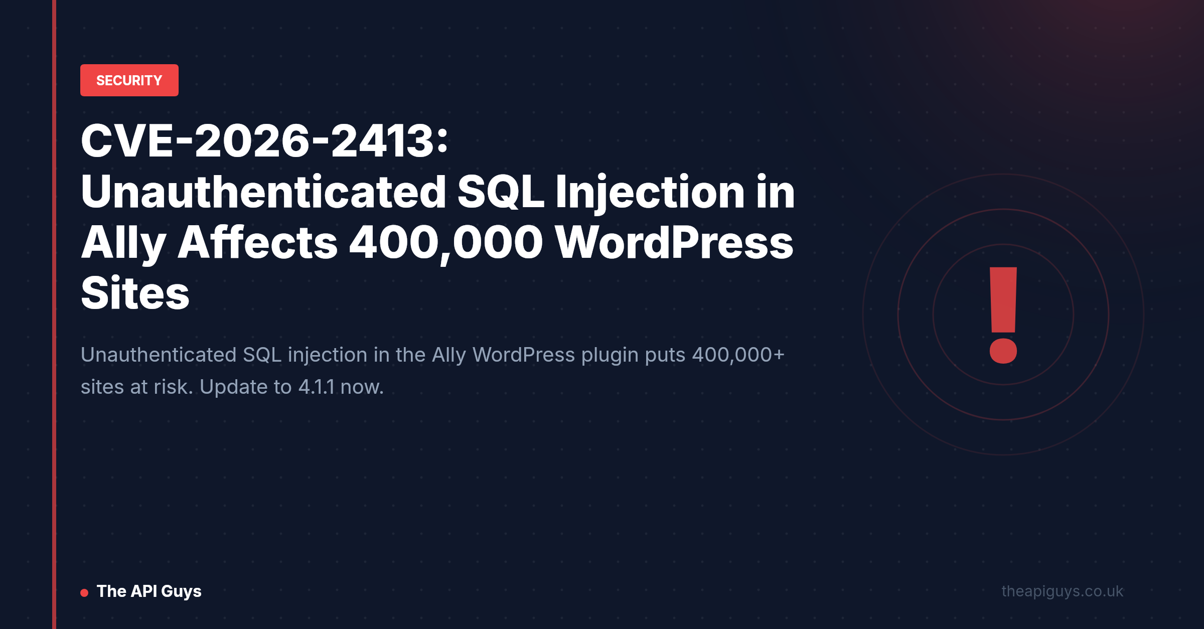 CVE-2026-2413: Unauthenticated SQL Injection in Ally Affects 400,000 WordPress Sites