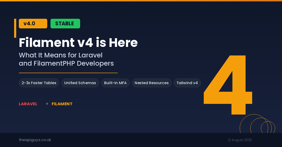 Filament v4 has officially landed as a stable release, and it is a significant step forward for anyone building admin panels, dashboards, or full-stack applications with Laravel. After a beta period that kicked off at Laravel Live UK in June 2025, the stable release arrived on 12th August 2025 packed with performance improvements, architectural changes, and new features that are well worth paying attention to.