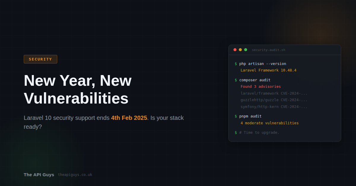 If you're running PHP applications right now, here's something that should be on your radar: Laravel 10 security support ends on 4th February 2025. That's less than five weeks away. Laravel 9 already lost security support back in February 2024. If you're still running either of these versions, you're about to be - or already are - running a framework that nobody is patching.