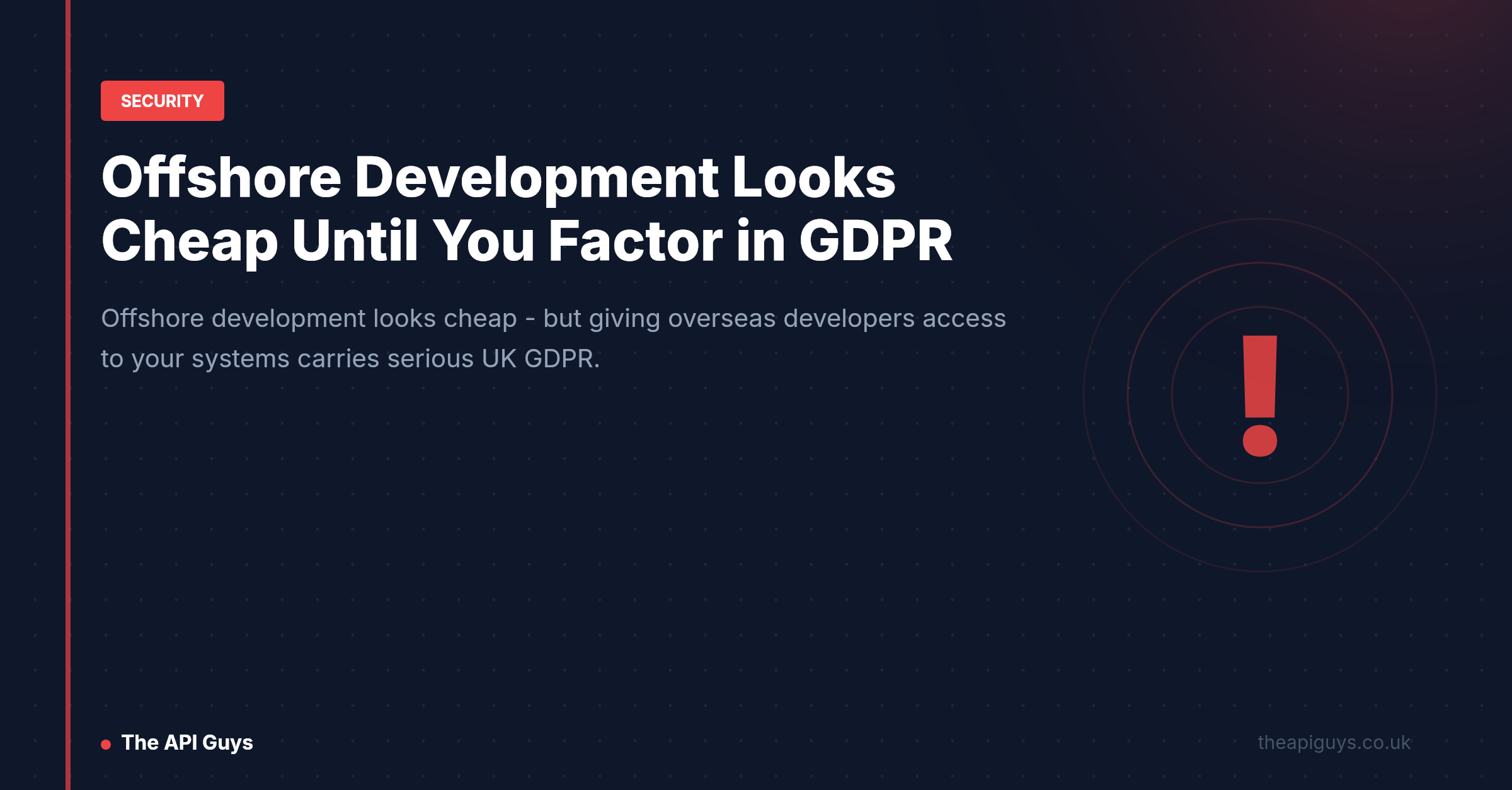 The part of the conversation that rarely happens is what it means under UK GDPR. Most businesses do not realise that bringing an overseas development team onto their project is not just a procurement decision - it is a data transfer decision with legal obligations attached. Get it wrong, and the cost savings evaporate quickly.