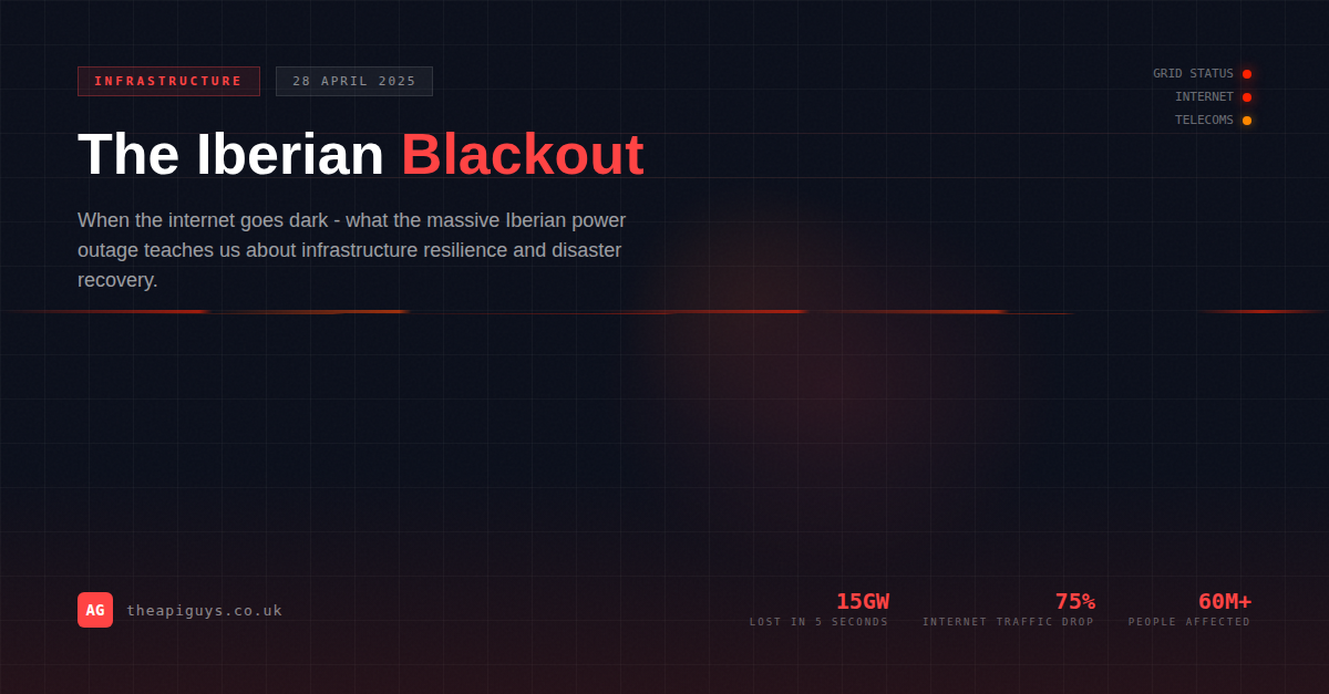 It is easy to think of a power grid failure as someone else's problem - something for energy companies and governments to worry about. But for anyone running a web application, an API, an e-commerce platform, or any cloud-hosted service, the Iberian blackout exposed uncomfortable truths about our collective dependency on assumptions we rarely question.