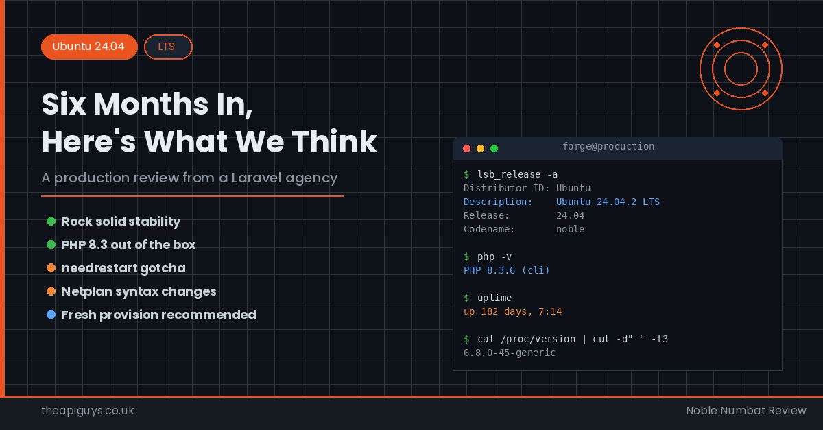 We provisioned our first 24.04 production servers via Laravel Forge in early 2025, once the 24.04.1 point release had settled in and Forge had confirmed full support. Six months on, here is our honest assessment.