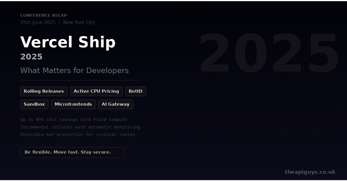 Vercel Ship 2025 took place on 25th June in New York City, and it was packed with announcements. The overarching theme was clear: Vercel is positioning itself as more than a frontend deployment platform. The push towards what they are calling the "AI Cloud" brings new compute primitives, smarter pricing, security tooling, and deployment workflows that are worth paying attention to, whether or not you are building AI-powered applications.