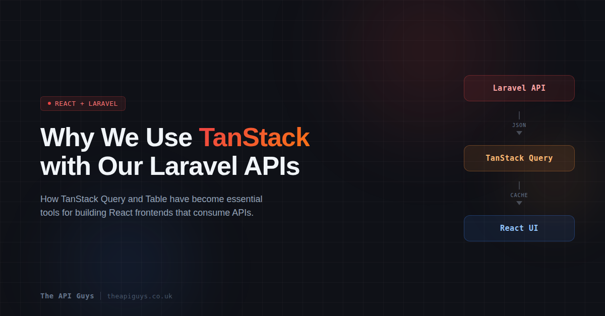 Our typical setup pairs a Laravel API backend with a React or Next.js frontend. TanStack Query sits between the two, managing the data lifecycle so our components stay clean and our API interactions stay predictable.